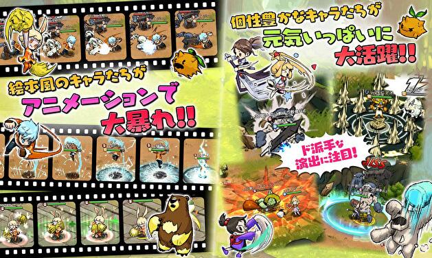 本作主打以赛璐璐动画风格带给玩家类似铅笔画作的感觉,通过将三个甲板与“Janken”属性相结合来创建战略,这与其他人有所不同,由元气满点的可爱角色们挤满画面全版,东奔西跑展开充满魄力的格斗漫画战斗。