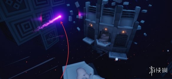 进入双人门后一直向前走,走到尽头后向前飞到台子上,在台子上等待紫色光芒过来即可,紫色光芒就在双人们内,飞行轨迹会路过这个台子,所以等待即可。