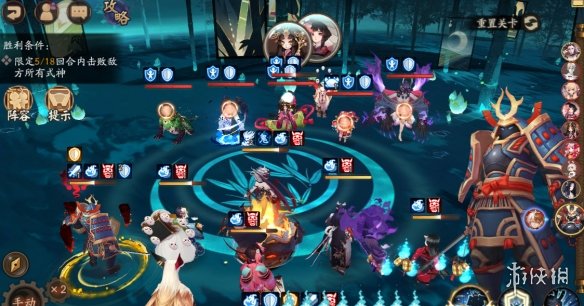 后续切自动即可,步骤为:鬼切释放三技能给芋圆,鬼吞普攻对面大天狗/蟹姬,鬼切再次收尾即可通关。