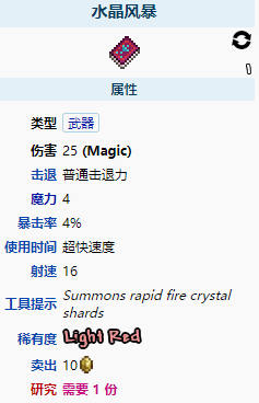水晶风暴 是一种困难模式下的魔法武器,它可以以巨兽鲨的速度快速地发射出碎魔晶。