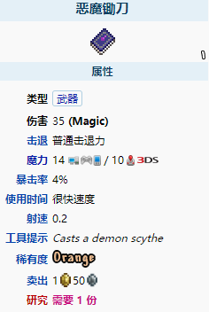恶魔锄刀是一种魔法武器,发射每发都能穿透多个敌怪和/或对大型敌怪造成多次打击的圆形射弹。