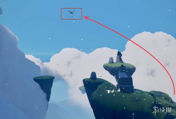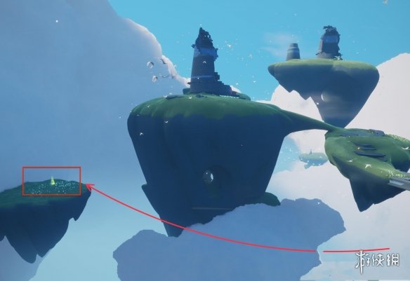 3、来到隐藏图的高台上,往左边有光翼的浮岛飞去;