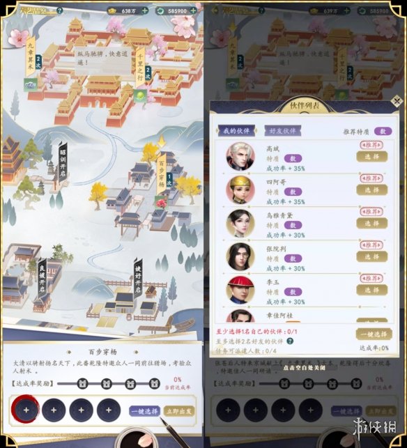 百步穿杨:优选特质为射的伙伴,可获得江南玉奖励。
