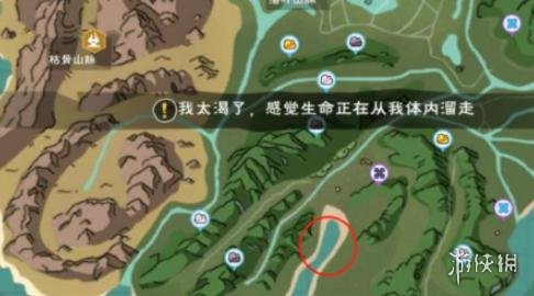 1、先到银月丘陵,然后前往地图上红色圆圈所示的仙女河处。
