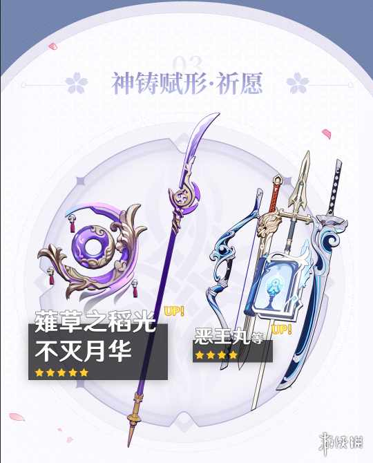 原神2.5版本下半武器池抽取建议。原神的武器池马上就要迎来更新,此次up武器为薙草之稻光和不灭月华,那这两个武器要不要抽呢,抽谁呢?和小编一起来卡看吧。