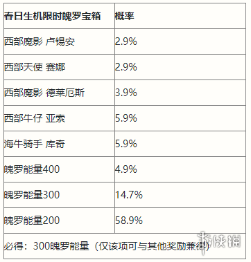 《英雄联盟手游》春日生机限时魄罗宝箱,将于2022年3月4日00:00正式上架商城,春日生机限时魄罗宝箱奖励抽取概率公式如下:
