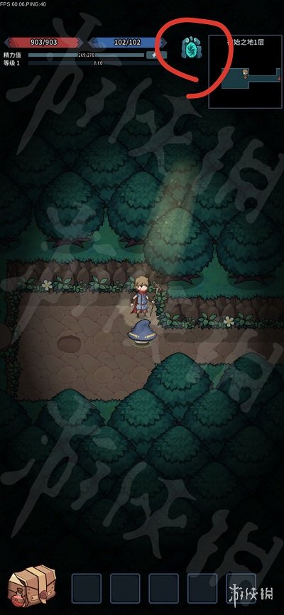 首先进入游戏主界面,点击上方标注位置推出地下城。