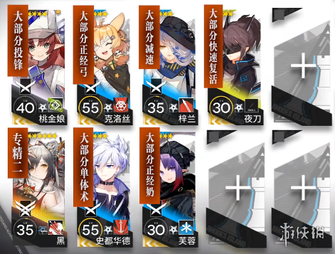 其他干员:执旗手先锋、常规狙击、单体术师、减速辅助、快速复活、单奶