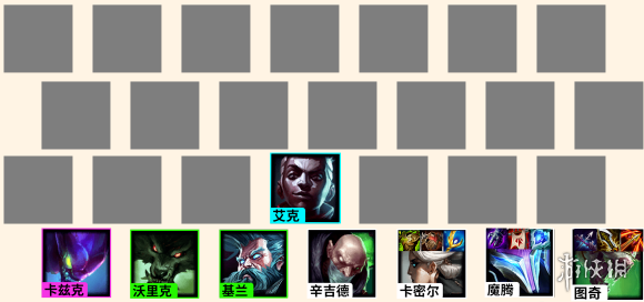 图奇、魔腾、辛吉德、卡密尔、沃里克、基兰、艾克、卡兹克