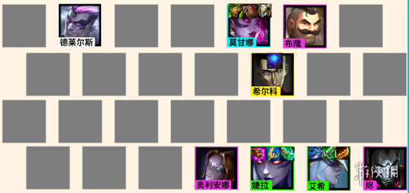 德莱厄斯、婕拉、艾希、莫甘娜、布隆、奥莉安娜、烬、希尔科