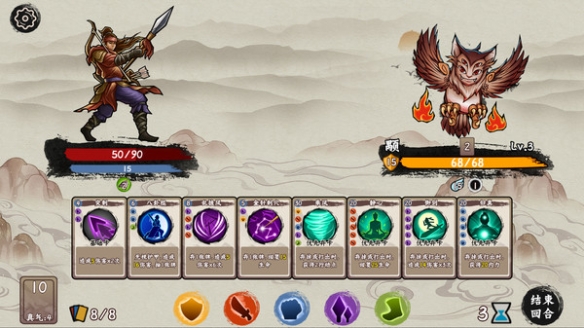 游戏玩法主要为卡牌构建(DBG),玩家在游戏过程中,通过不断地击败怪物或学习招式,从零开始不断地加强自己的能力和卡组的质量,并一步一步地挑战更为强大的怪物,直到到达200关战胜蚩尤为止。