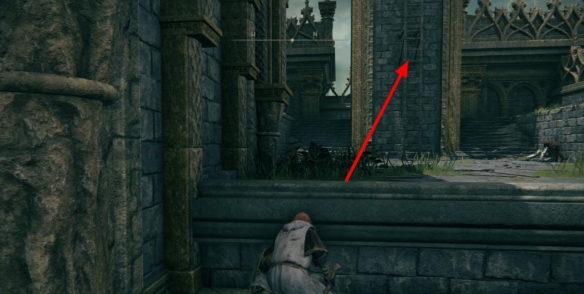 随后通过旁边的走廊屋顶到达对面,后通过倒下的碎石抵达上层平台边缘,沿着边缘前进抵达屋顶区域。