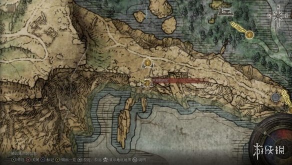 湖畔结晶洞窟和眠狼破屋的位置: