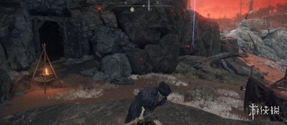 就是图示左边的矿洞,进入矿洞后,我们需要一直往BOSS方向走,走到另一端的出口,便可以见到壶哥。这个矿洞的BOSS掉落物我记得是名刀月隐,是一把法师打刀。