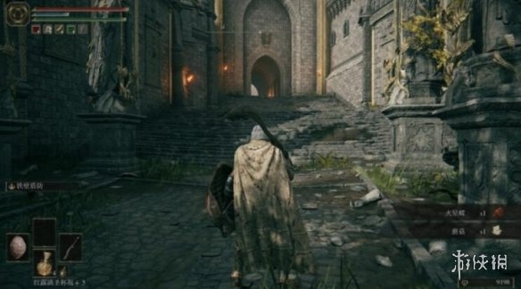 具体位置在升降机房间这个赐福附近,出门楼梯台阶下面有一条狗和一个胖胖,边上就是那个发光的雕像。