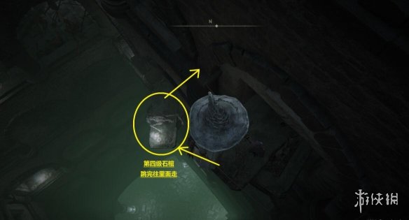 接下来跟要点和刚刚相同,往来时的方向跳跃到第三级石棺。