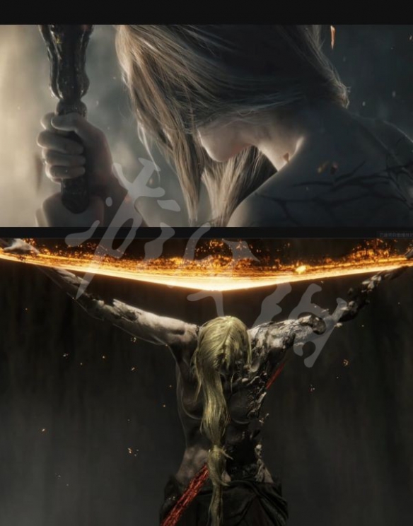 2019预告玛丽卡的裂痕、游戏内身躯的破碎状,除了象征玛丽卡作为法环容器破裂也能视为"石肤"血统的表现。