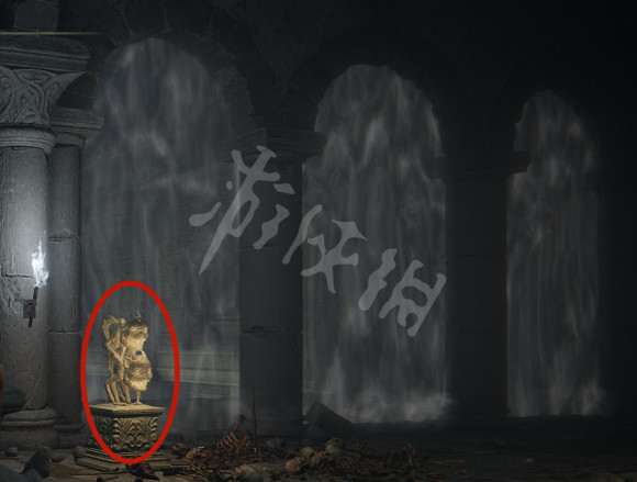 接下来一路向下,在下图桥这两处红圈地点过桥,过桥后出现上下两条路,走上面的路尽头处会有个灵魂剑盾失乡骑士。除了会闪现以外和剑盾失乡骑士一样招式,掉落龙飨印记。