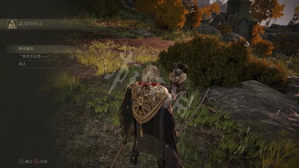 前往【傍湖断崖】的赐福点,在白天会看到柏克,与他对话后可以进行普通防具的修改。