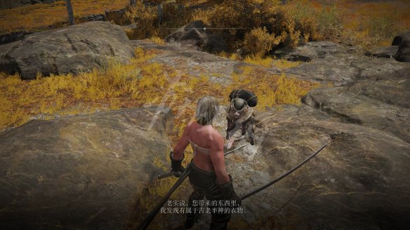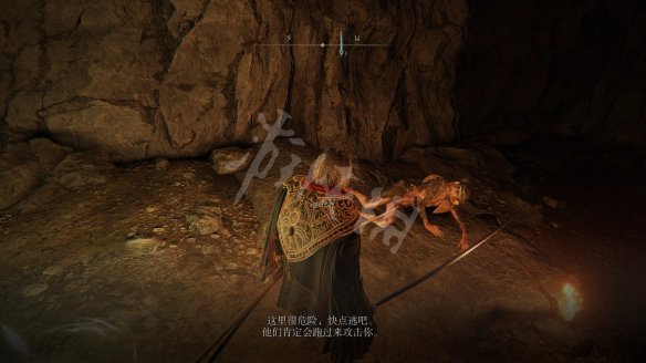 来到图中所示的海岸洞窟,在洞口的赐福点旁边看到被暴揍一顿的小可怜。