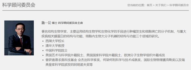 据诺诚健华公司官网显示,施一公在该公司担任科学顾问委员会主席。