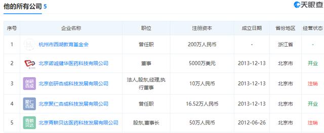 梳理施一公在商业界的经历,包括诺诚健华在内,施一公参与过的公司共有5家。
