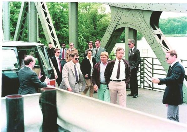 1985年,扎哈尔斯基(双手插兜者)在格连尼克桥被交换回国