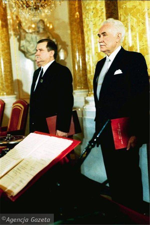 1990年12月22日,卡丘罗夫斯基(右)、瓦文萨(左)在就职仪式上