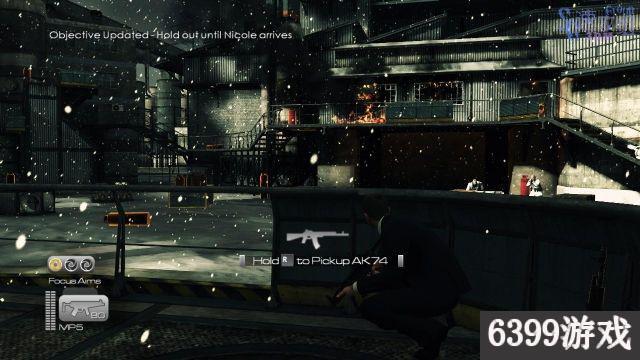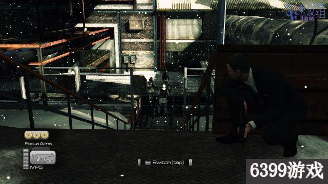 会从右边爬上来,我们在右边找个掩护,直接CQC干掉爬上来的敌人就行。最后左边的楼梯上上来敌人,远处的高处还有敌人。