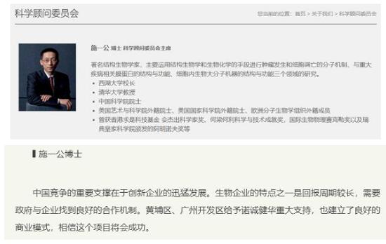 据诺诚健华公司官网显示,施一公在该公司担任科学顾问委员会主席。