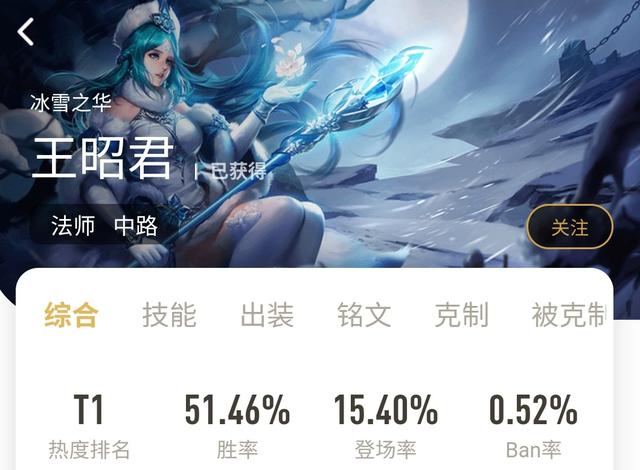 王小军作为单独叉子类法师,胜率也很高。据王永志统计,王昭君以51.46%位居全法胜率第四位,可见王昭君的强势。