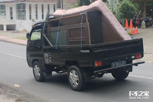 印尼路上搬家的小微卡,看来印尼还没有被货拉拉等车货匹配平台攻陷。