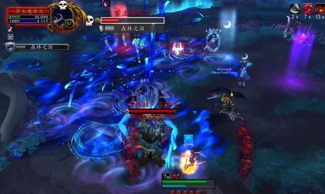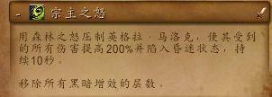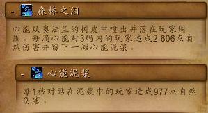 这个技能效果未翻译,效果是每当宗主奥法兰施放森林之泪时,对每个人脚下发射的黑圈数量都会增加2个,这个效果会在打醒宗主奥法兰后重置。