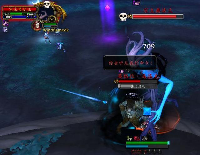 BOSS战斗激活前可以看到英格拉·马洛克不停地对宗主奥法兰施放灵魂镣铐,试图将其奴役。
