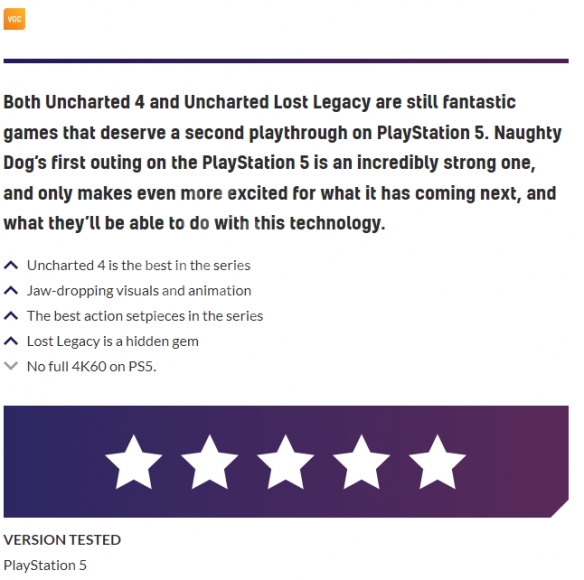 神秘海域4和神秘海域失落的遗产都值得在PS5上再体验一次。这是顽皮狗在PlayStation 5上首次亮相的游戏,非常强大出色,这让我更加期待它接下来的发展,以及他们将利用这些技术做些什么。