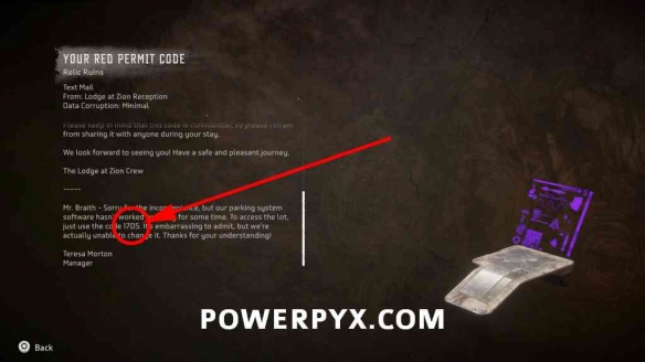 第4步:在同一个房间,扫描数据点,它显示门代码是 1705。