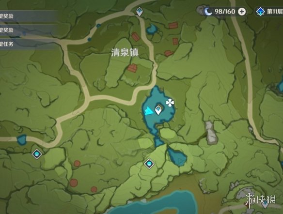 清泉镇湖中间传送点,周围很多嘟嘟莲,青蛙。