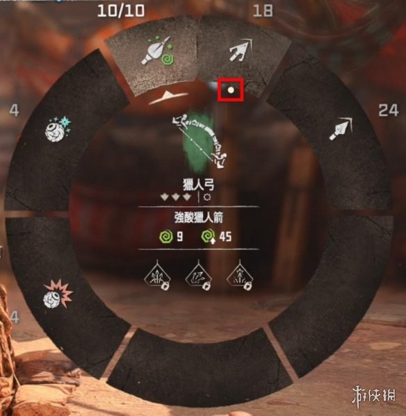 如何看锁定武器,如下图,被锁定的武器(弹药)会有一个小圆点。