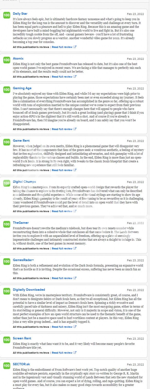 今日,《艾尔登法环》媒体评分正式解禁,IGN为本作给出了10分的评价。