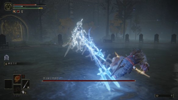 Boss的近战横扫范围相当大,且变招相当多,当它高高跃起后甩跳劈后会接一个向前的戳刺,这时往马屁股后面跳会有蹭刀的时机,不过需要注意他可能会变招加几连劈砍。