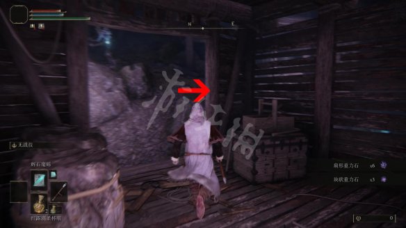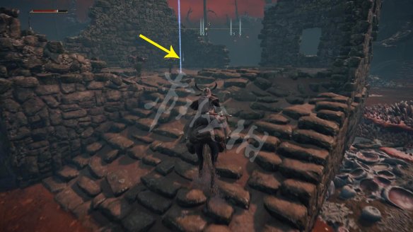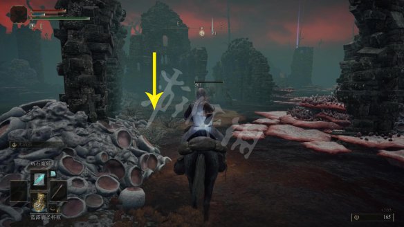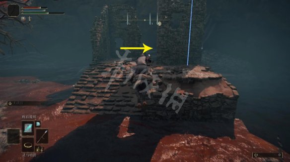 下图废墟角落的闪光点可以捡到旅行帽子等多件装备。