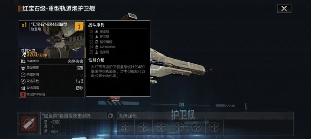 红宝石级重型轨道炮护卫舰也是一款值得在获取后立刻着手培养的护卫舰,在它的属性评价可以看出来,它的输出端和防御端都算不错,