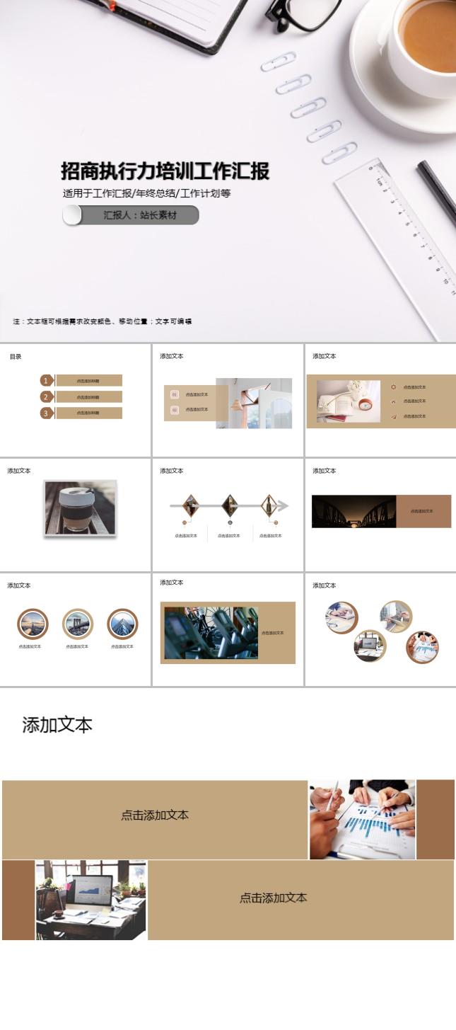 1.《招商执行力培训工作汇报PPT模板》援引自互联网,旨在传递更多网络信息知识,仅代表作者本人观点,与本网站无关,侵删请联系页脚下方联系方式。