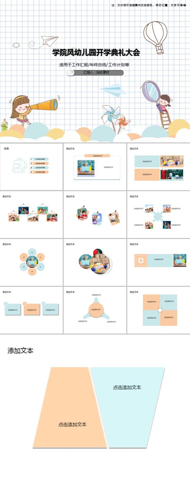 2.《学院风幼儿园开学典礼大会PPT模板》仅供读者参考,本网站未对该内容进行证实,对其原创性、真实性、完整性、及时性不作任何保证。