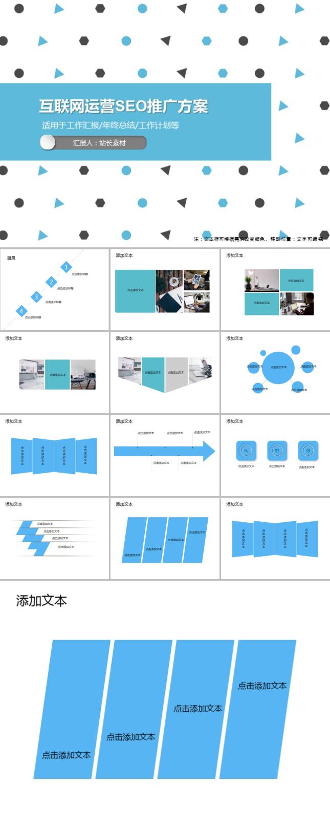 1.《互联网运营SEO推广方案PPT模板》援引自互联网,旨在传递更多网络信息知识,仅代表作者本人观点,与本网站无关,侵删请联系页脚下方联系方式。
